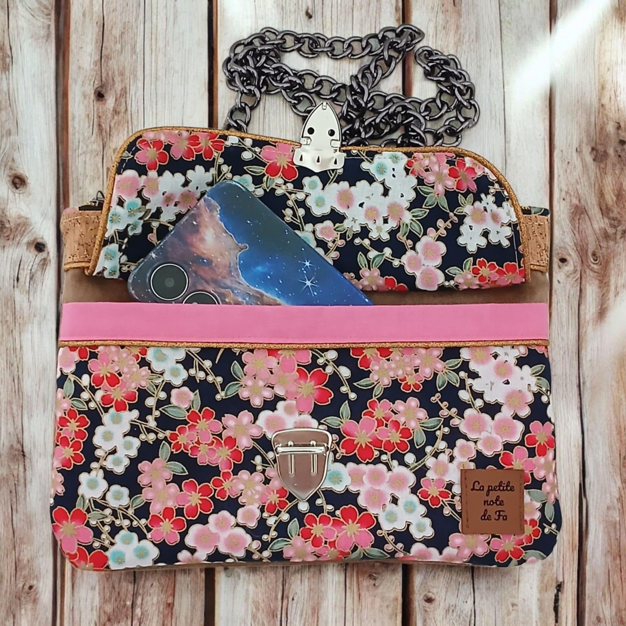Laissez-vous séduire par le charme délicat du Sac Rosalie – Sakura Doré, une pièce unique imaginée et confectionnée à la main par La petite note de Fa.