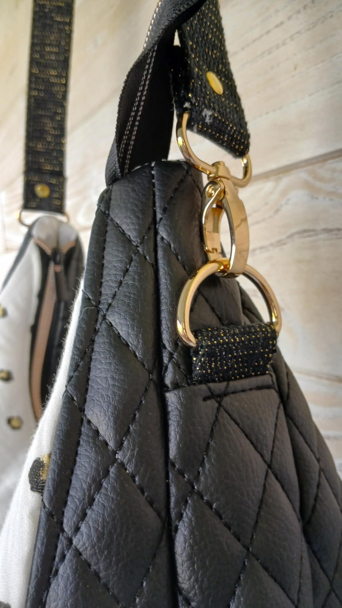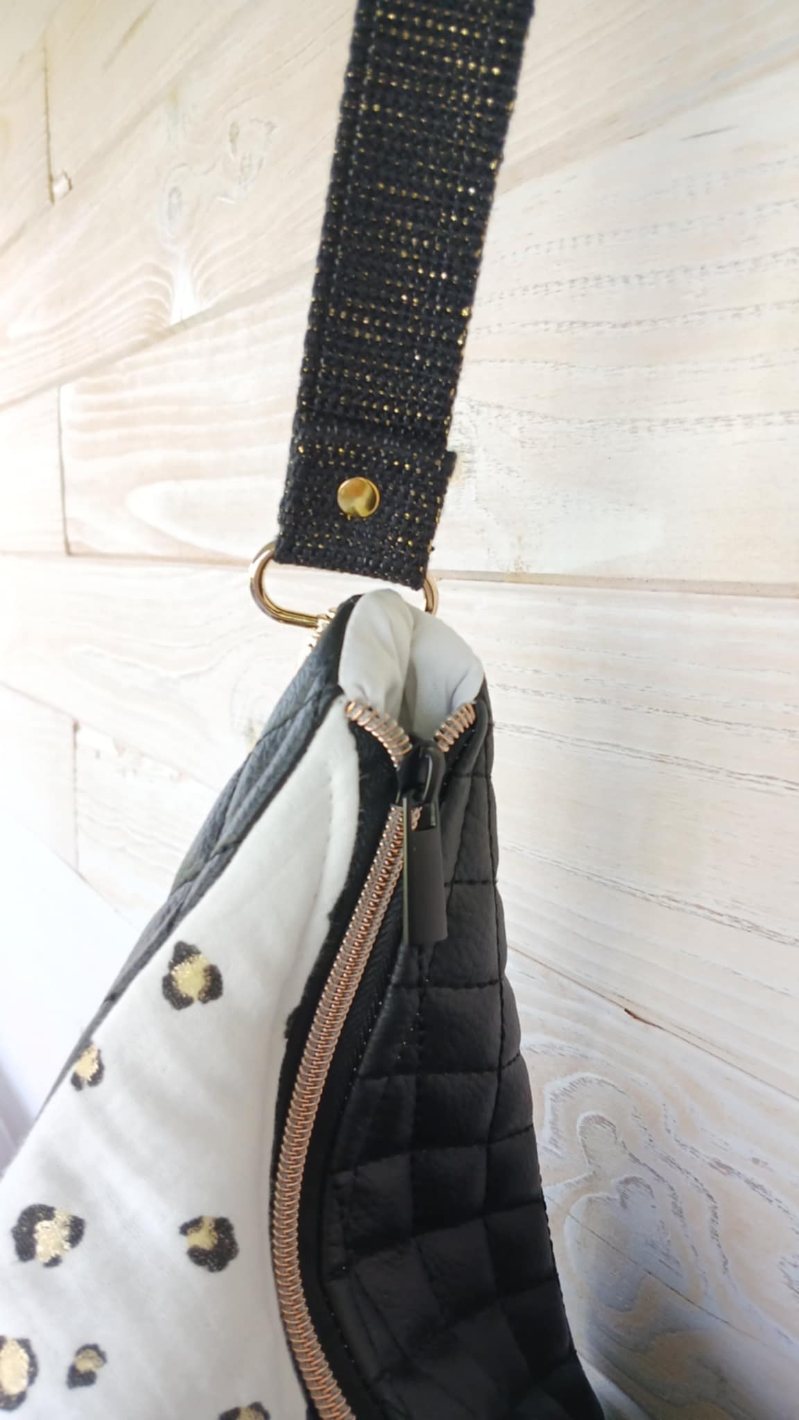 🖤 Extérieur : simili cuir matelassé noir et coton imprimé léopard doré