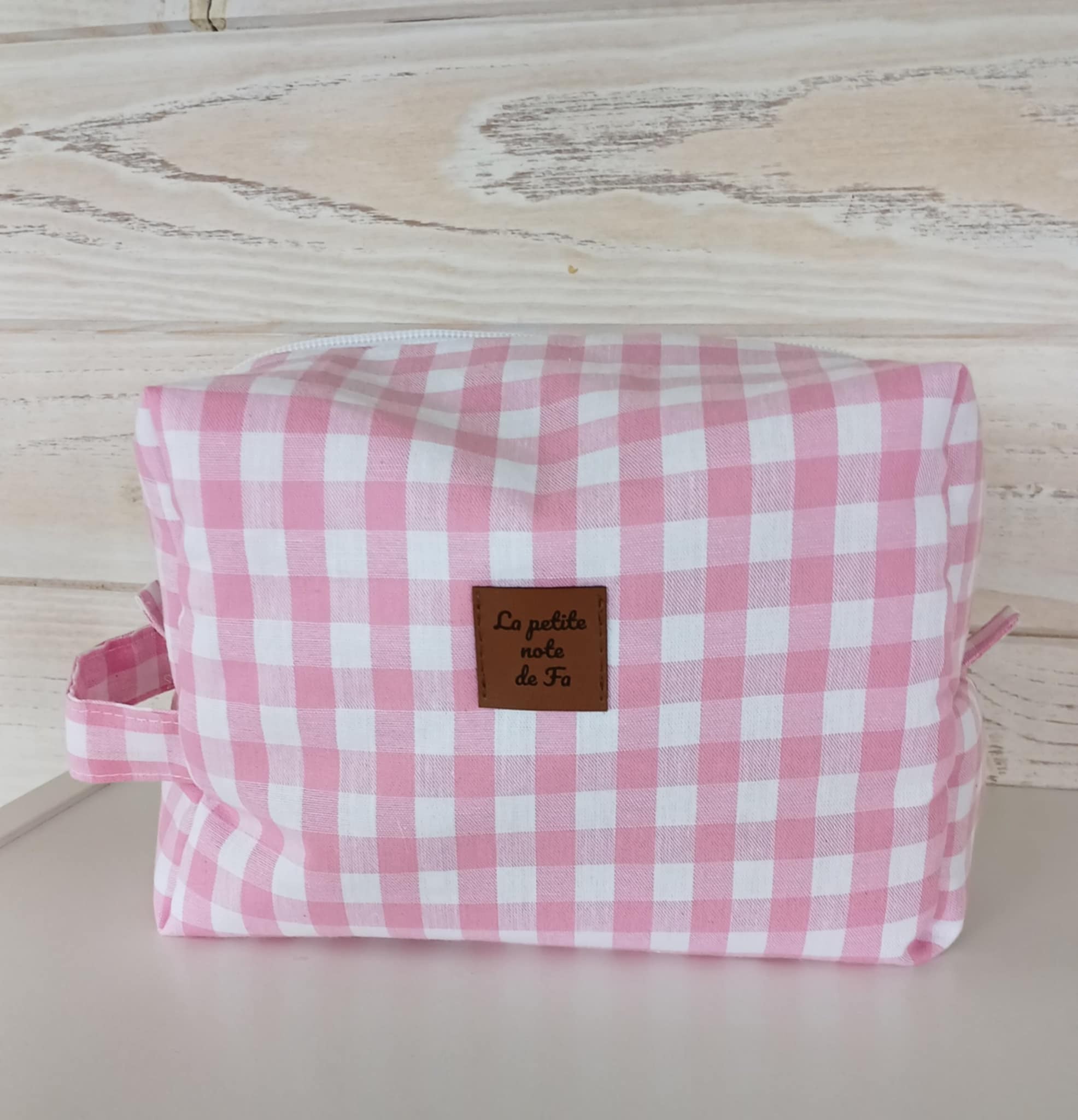 Entièrement réalisée à la main dans l’atelier La petite note de Fa, cette trousse associe le charme intemporel du vichy rose à une confection soignée et durable. Un accessoire chic, pratique et tout doux pour accompagner chaque moment.