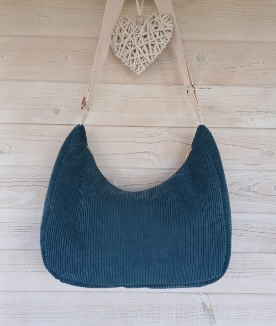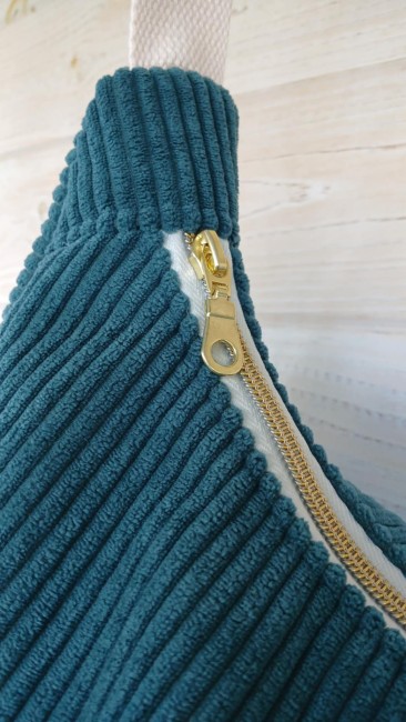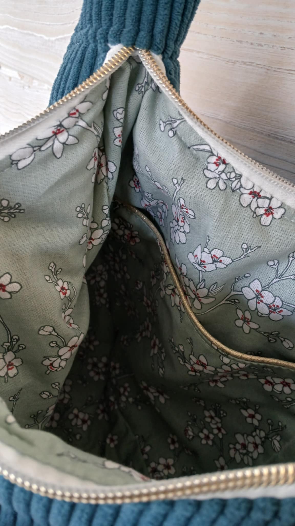 Sac Knox Velvet Vert – Velours côtelé & Doublure Fleurs d’Amandier – Fait main