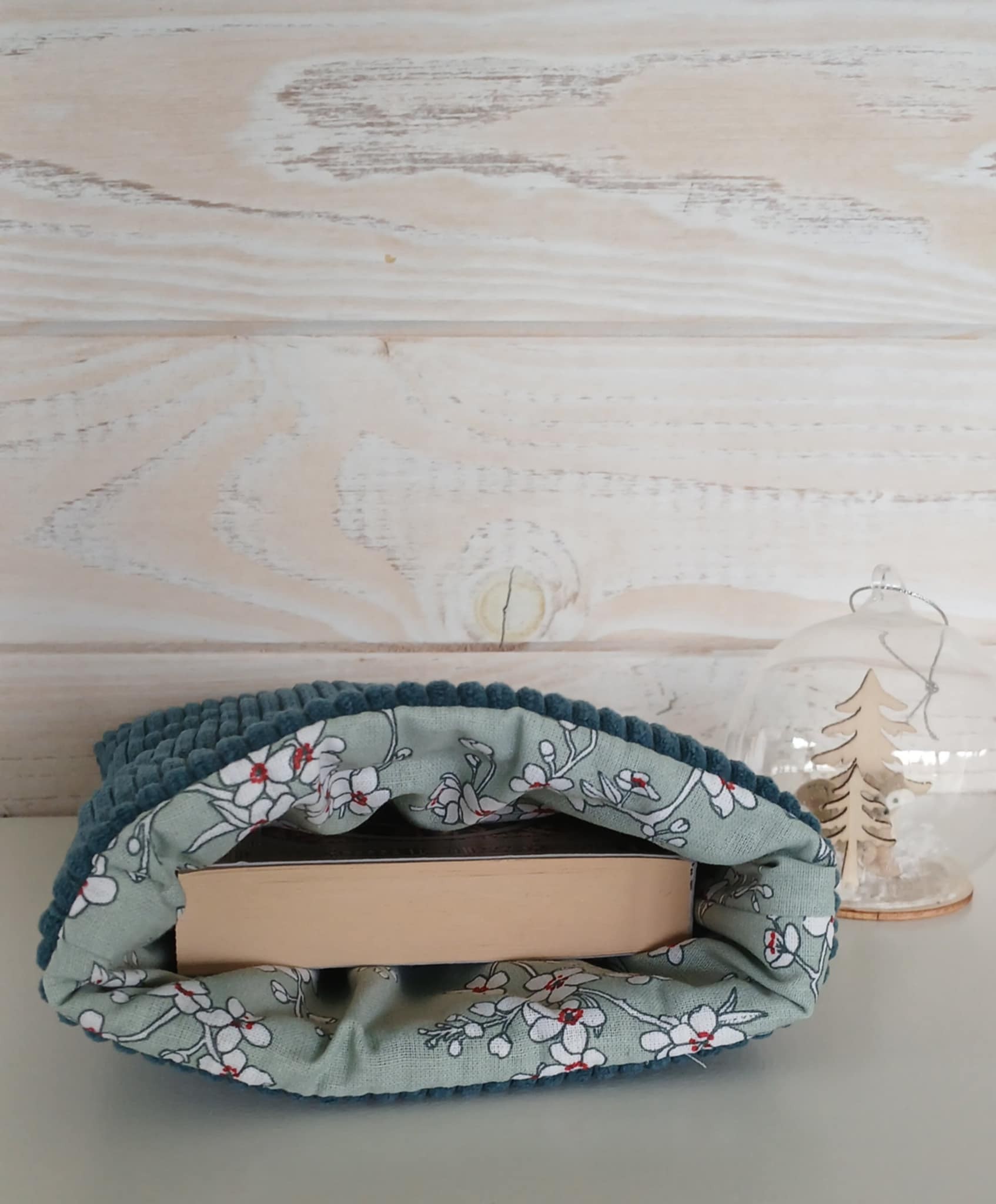 Housse de livre – Velvet Vert – Fait main, protection livre, cadeau lecture