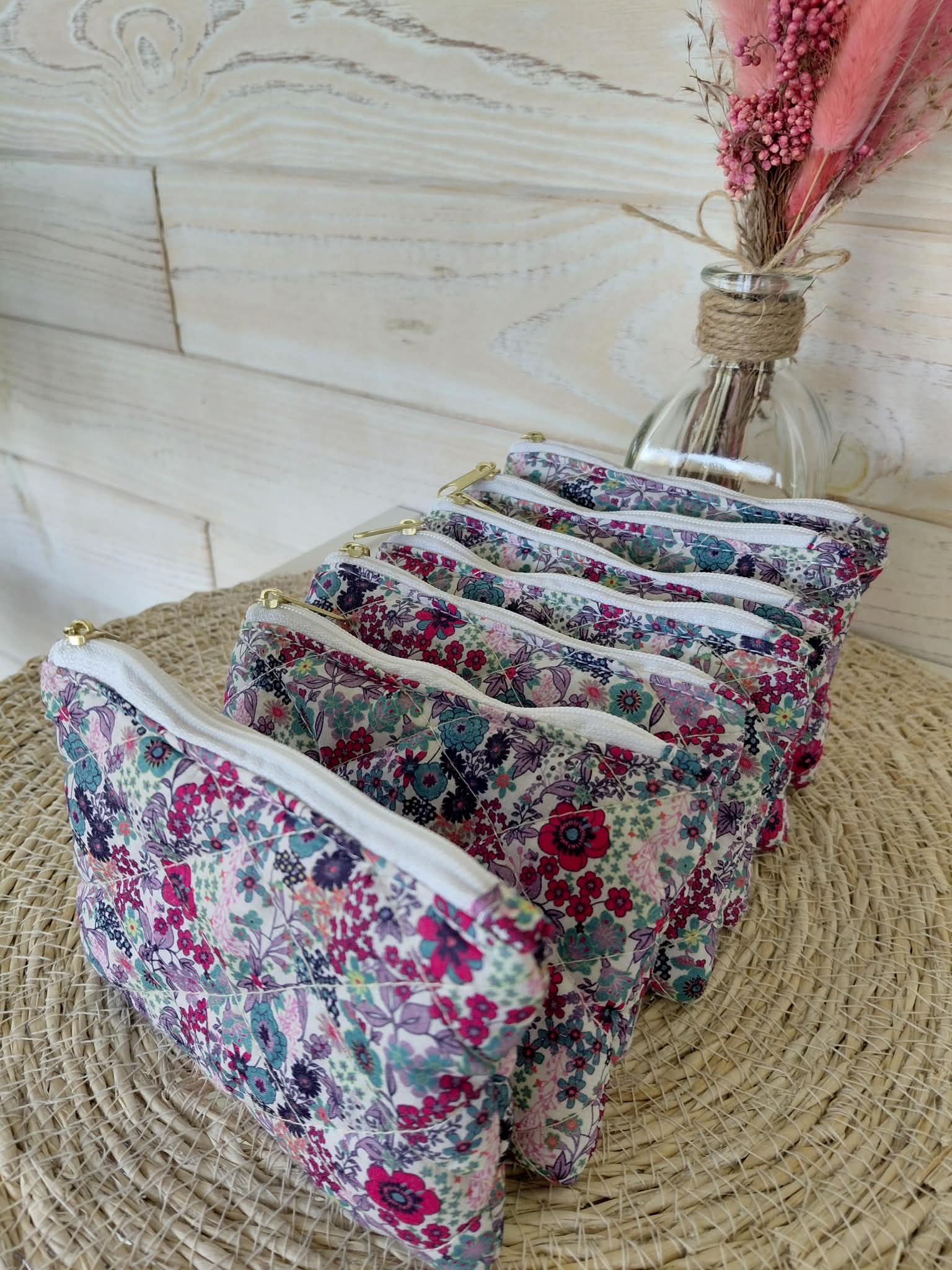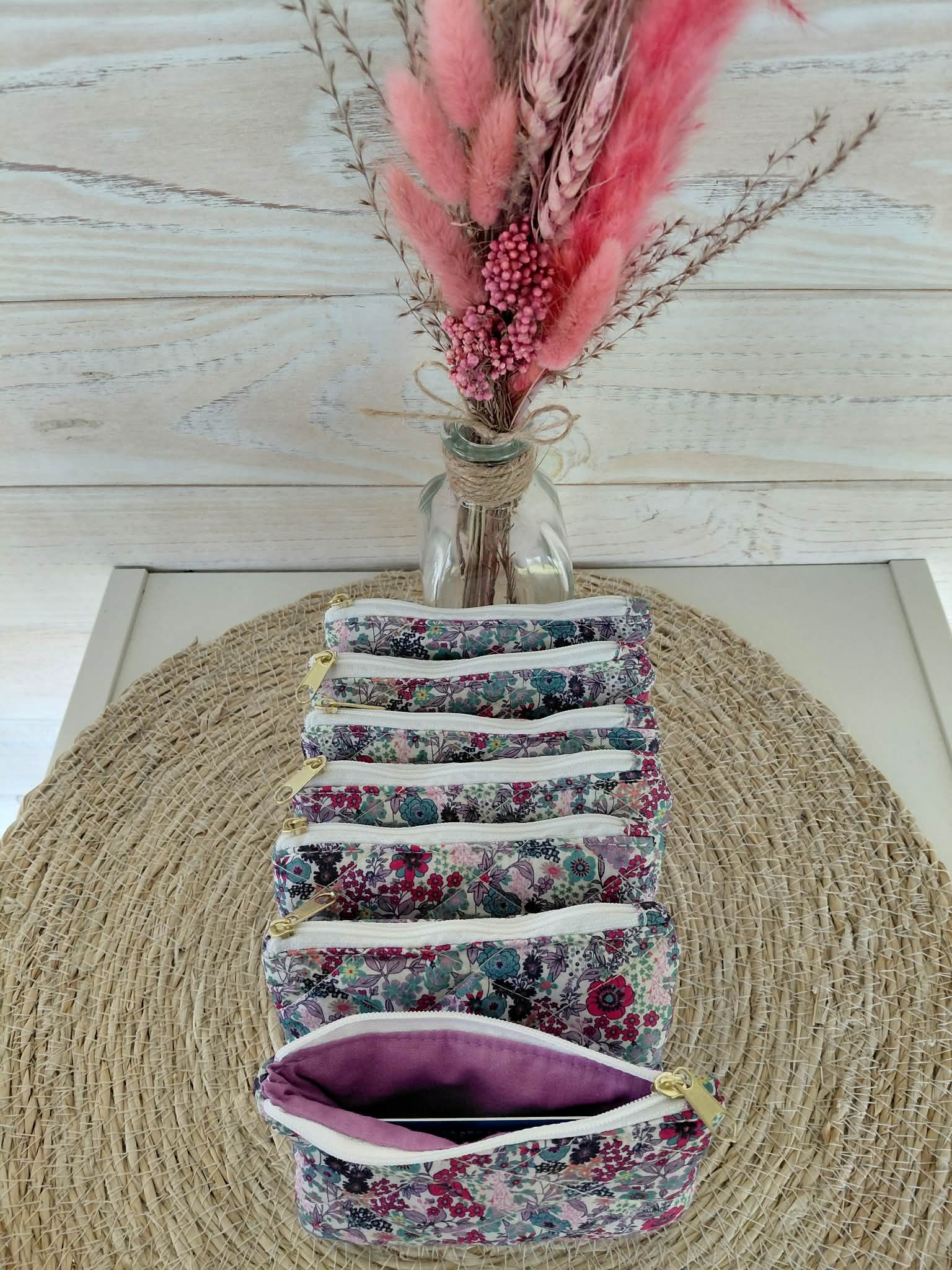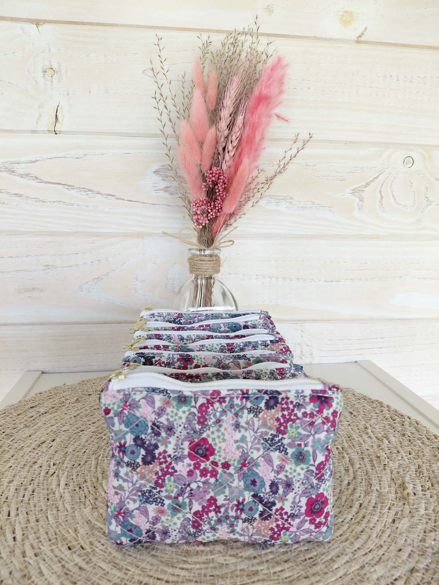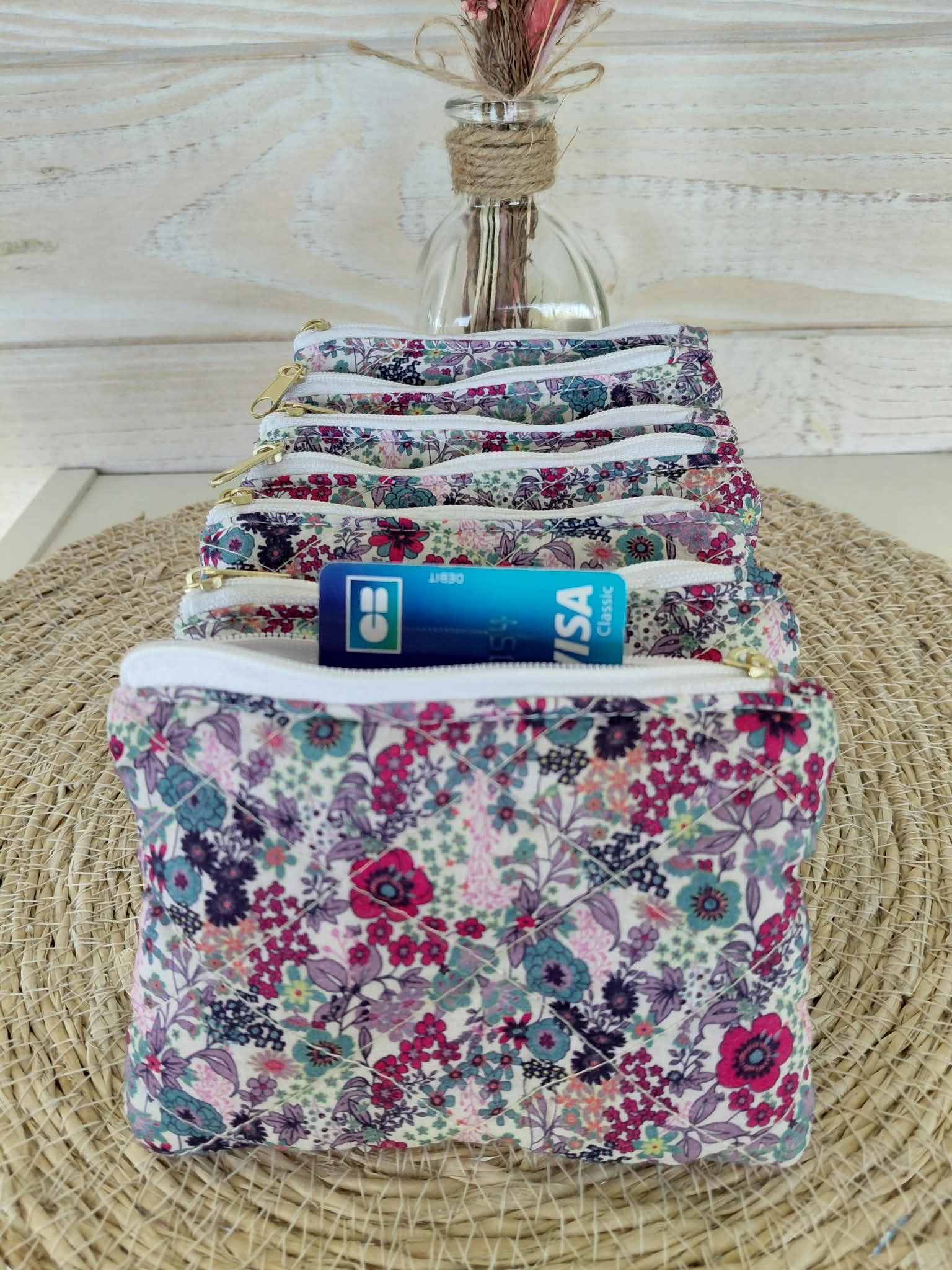 Porte-monnaie Matilde – Coton imprimé fleurs fuchsia & canard – Fait main