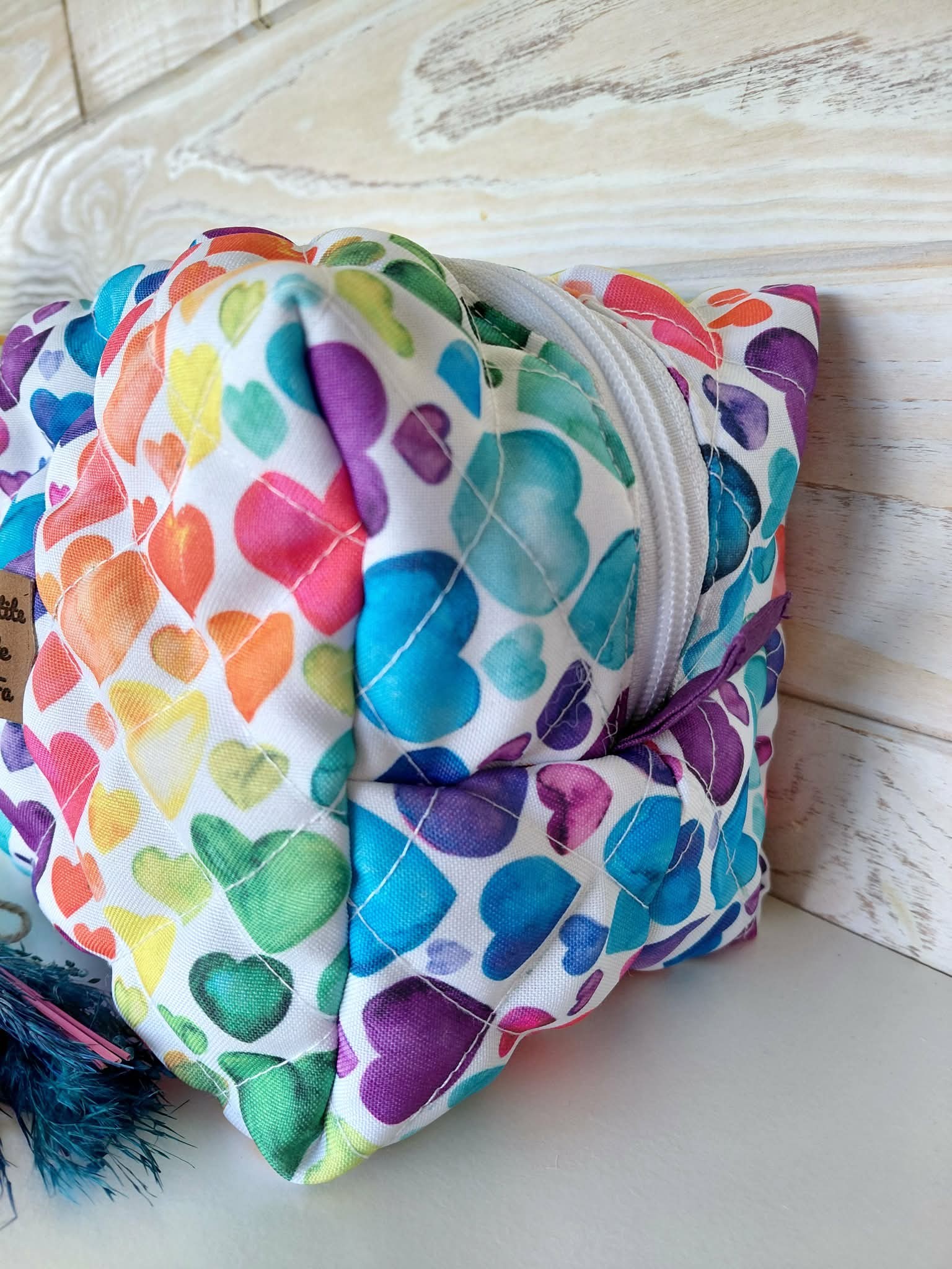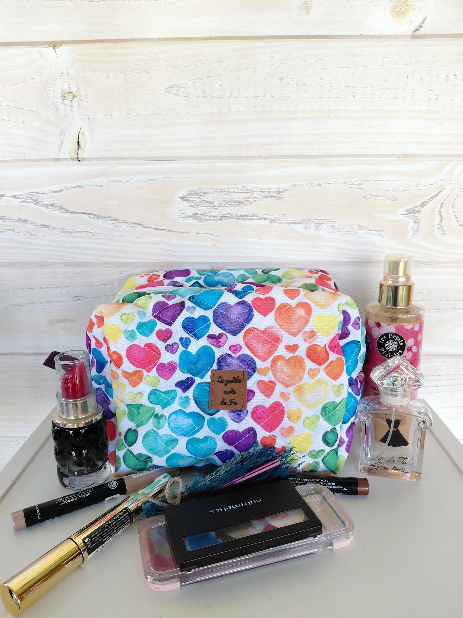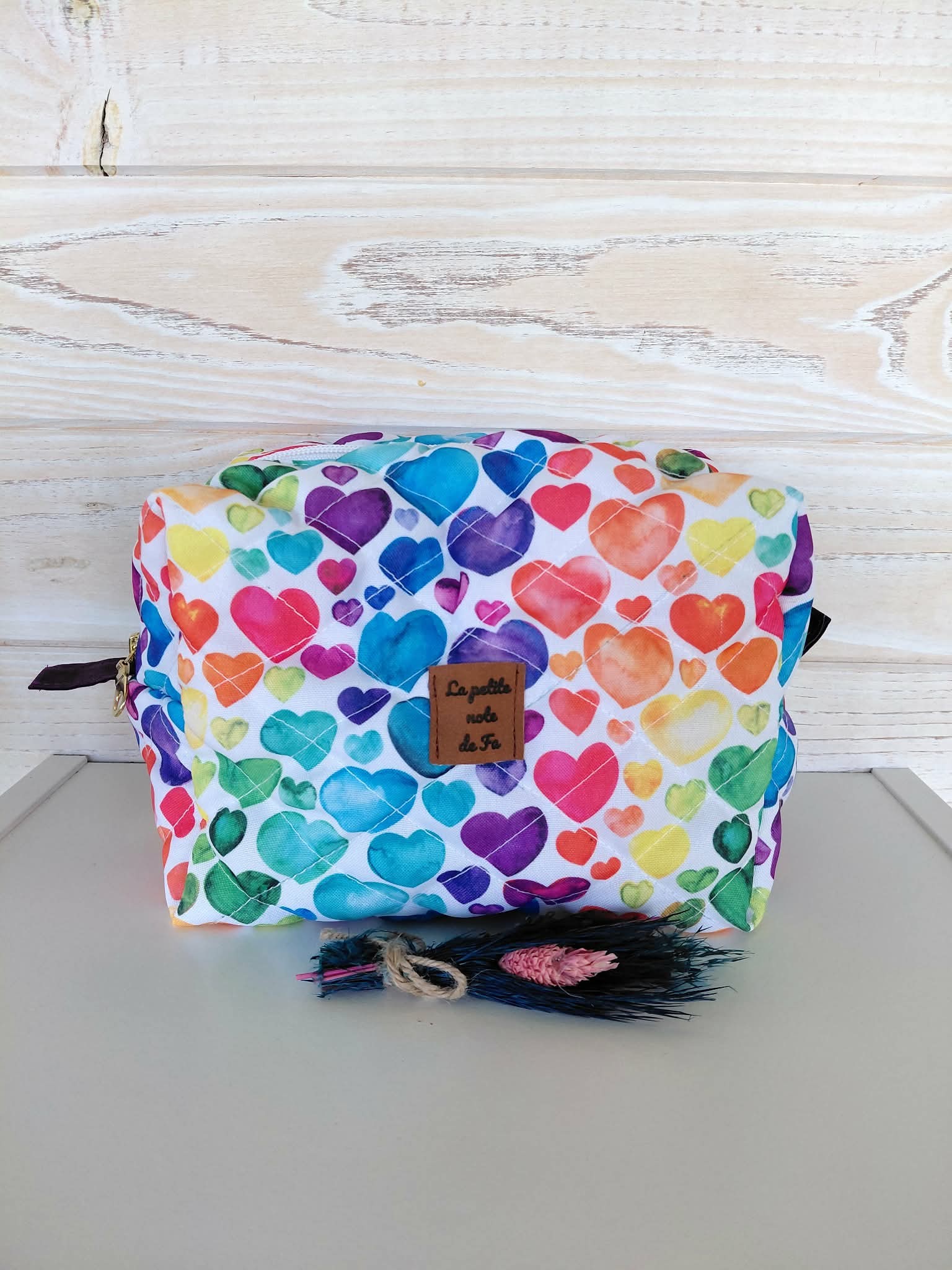 Découvrez la trousse de toilette Cœur Arc-en-ciel, une création signée La petite note de Fa.