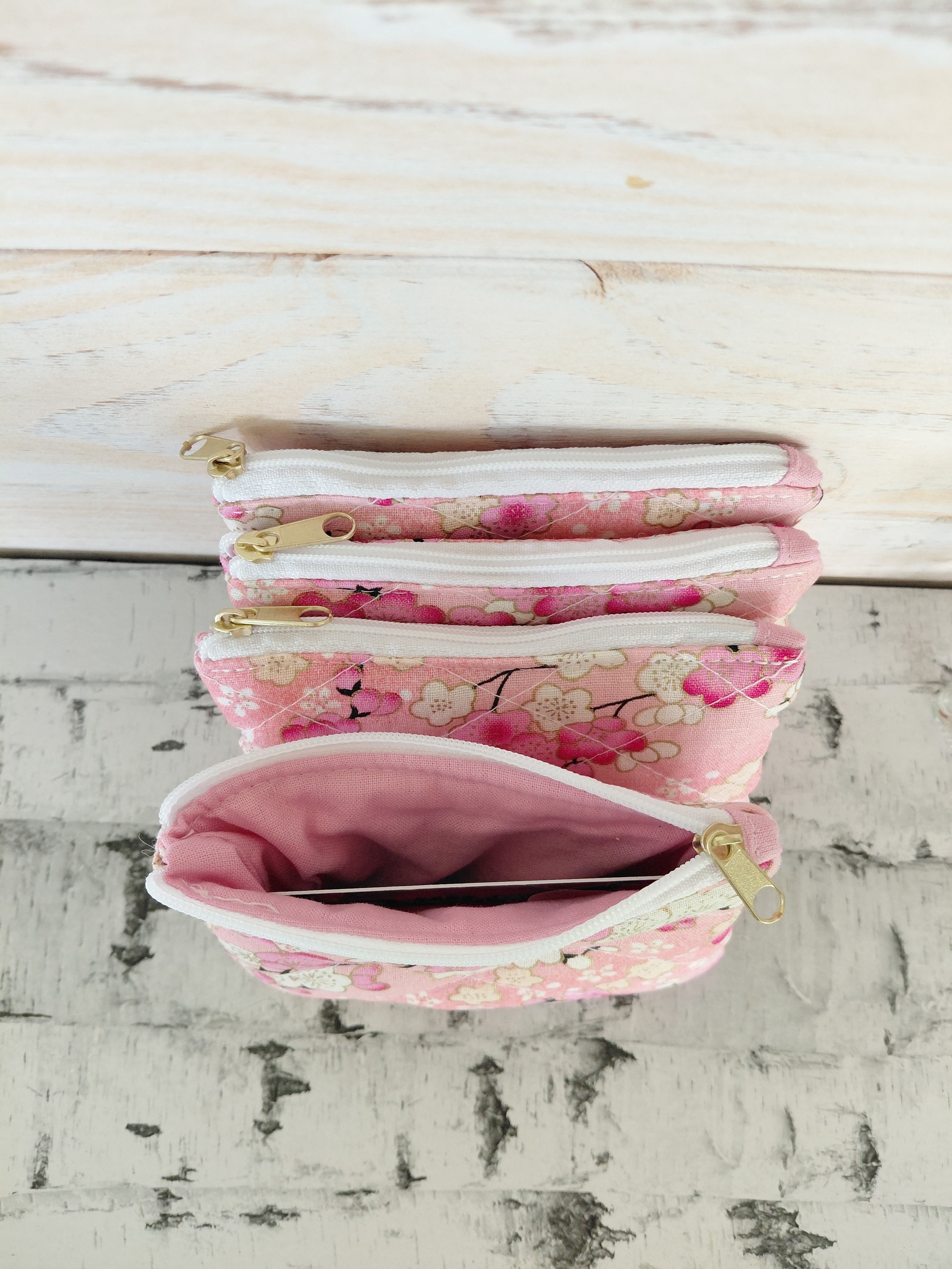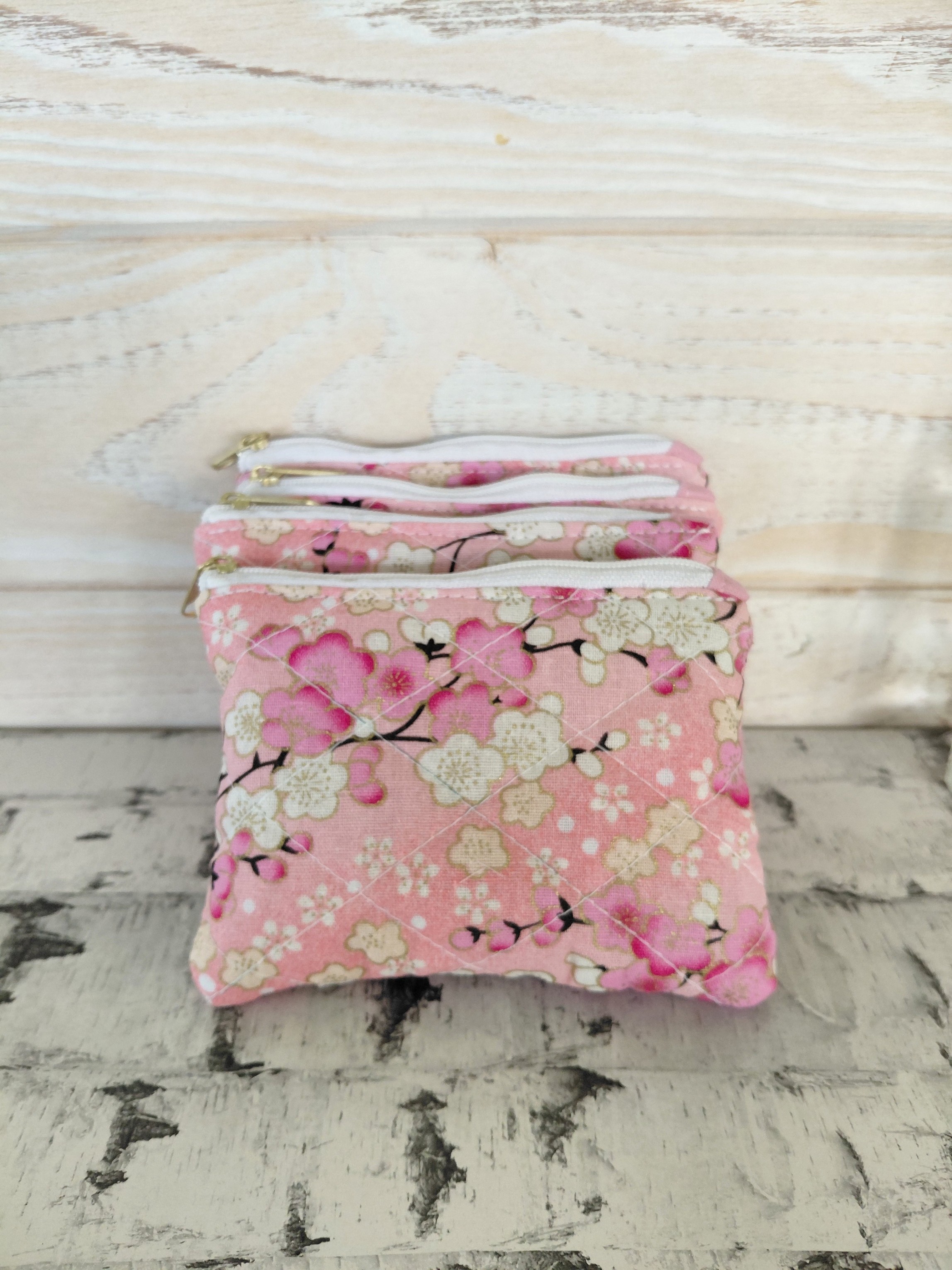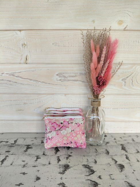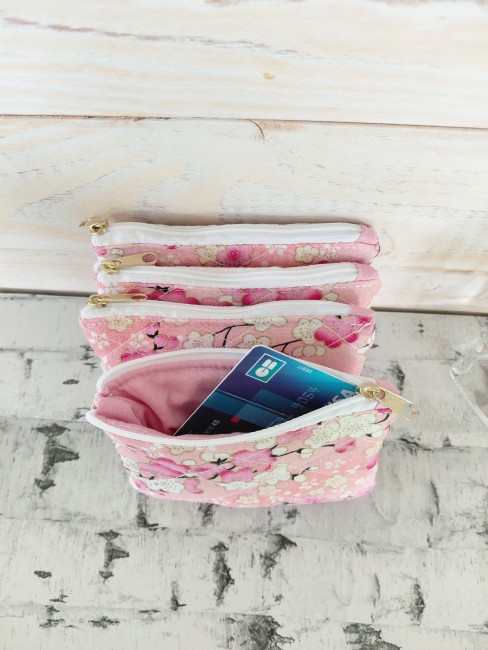 Le porte-monnaie Cerisier séduit par son coton rose imprimé de fleurs de cerisier, un motif doux et élégant qui apporte une touche printanière et raffinée à votre sac.