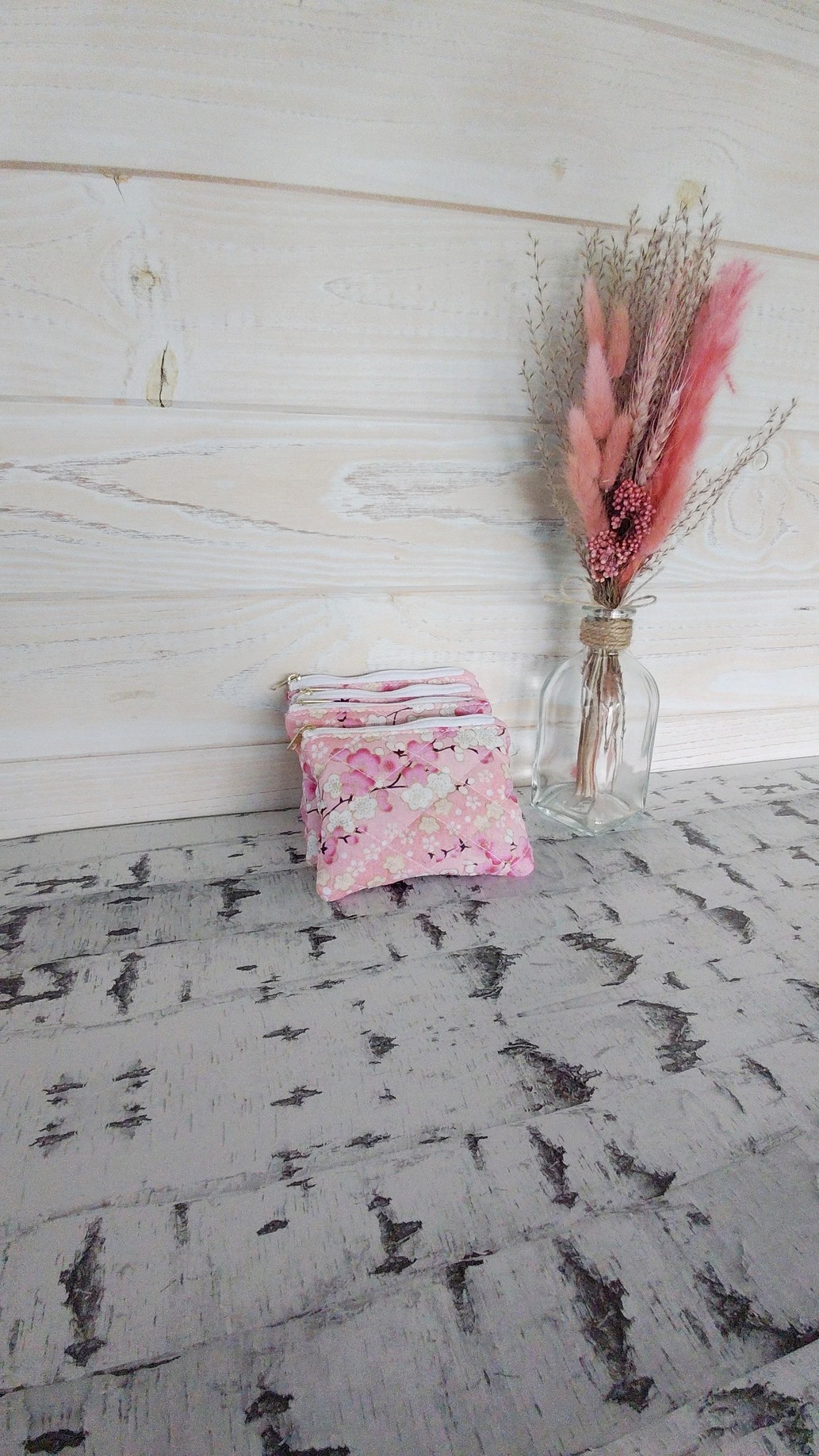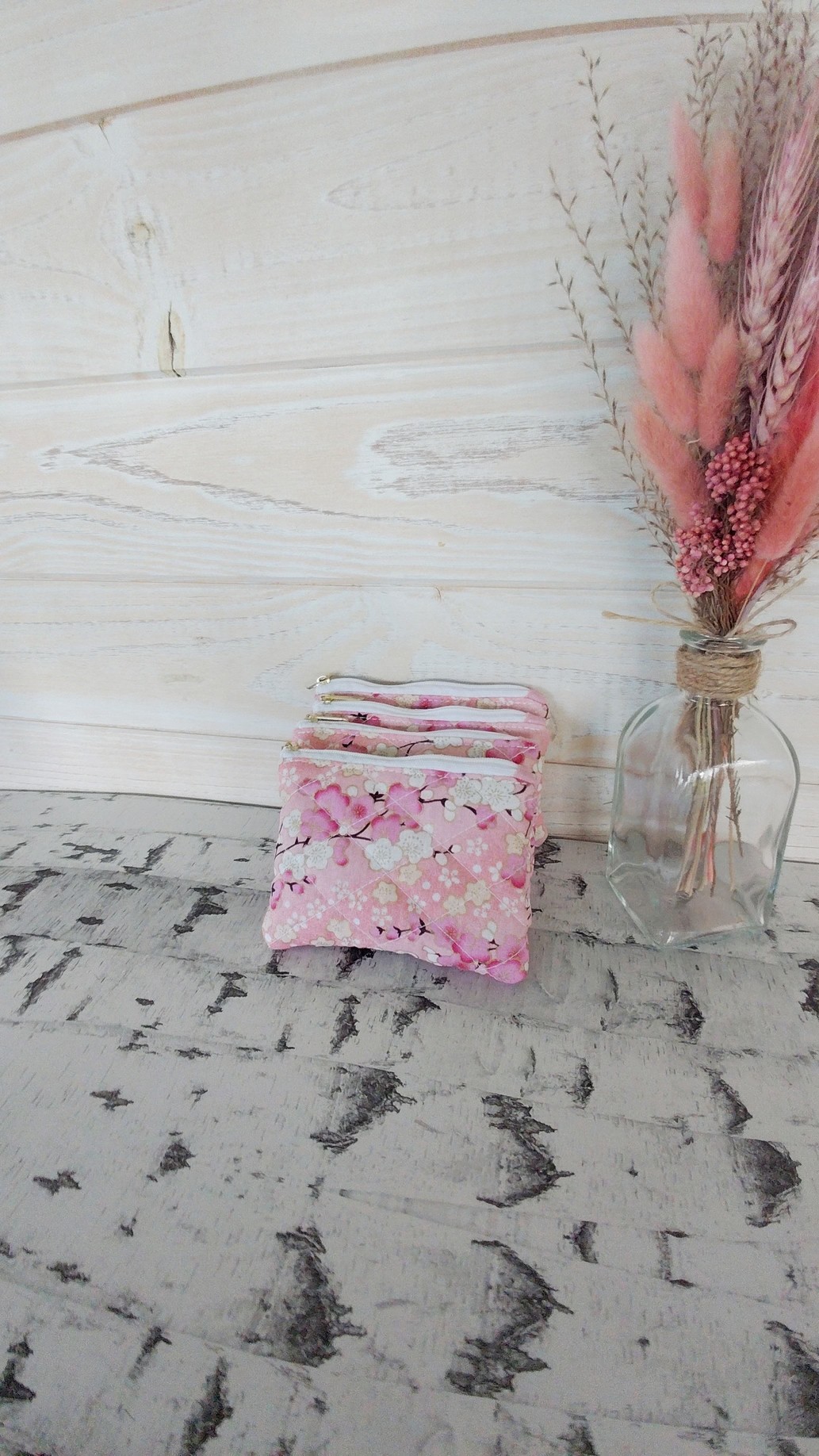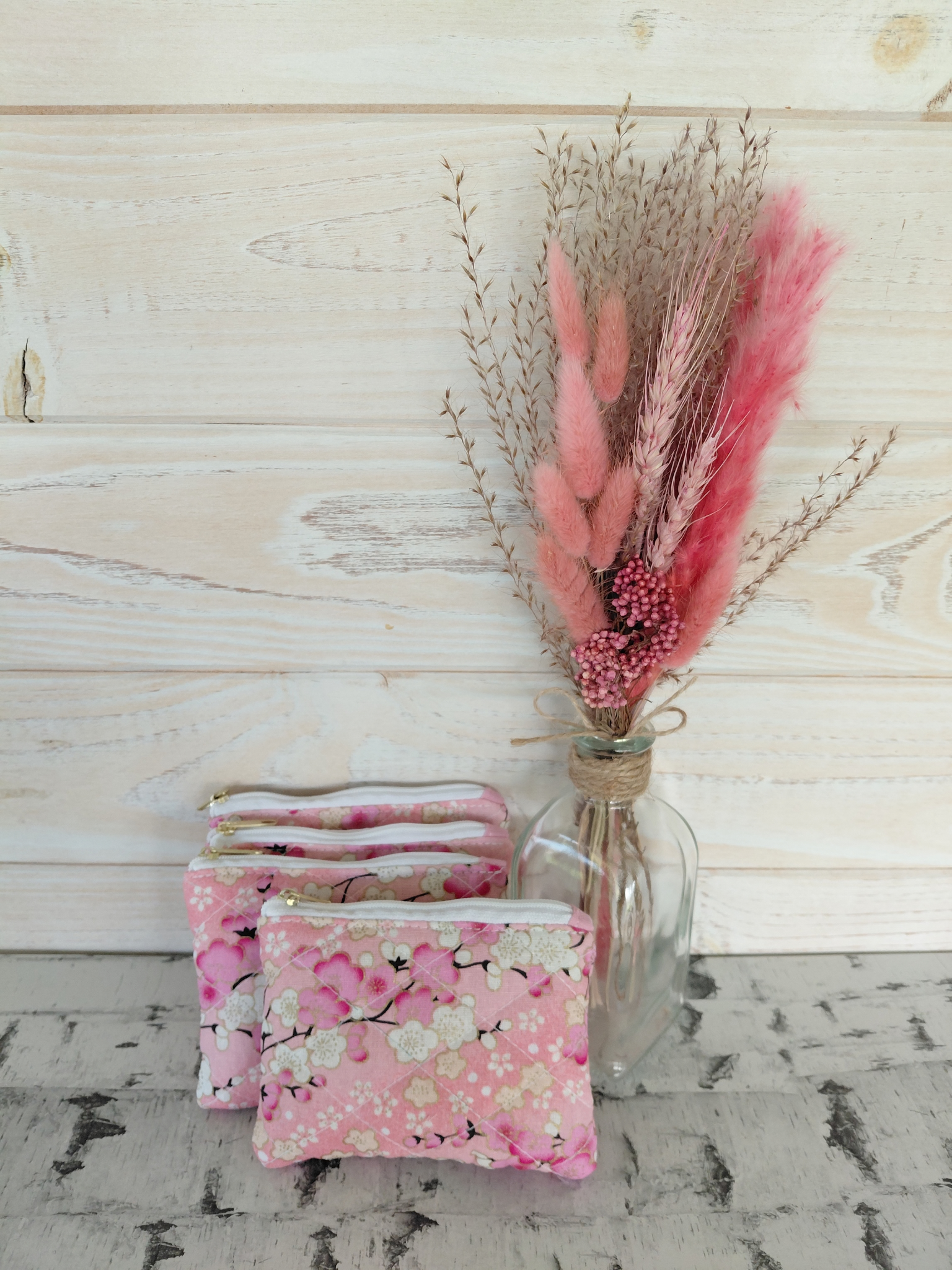 Le porte-monnaie Cerisier séduit par son coton rose imprimé de fleurs de cerisier, un motif doux et élégant qui apporte une touche printanière et raffinée à votre sac.