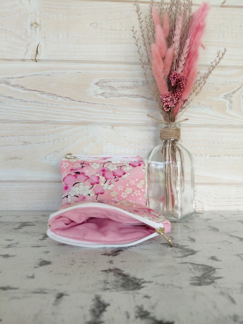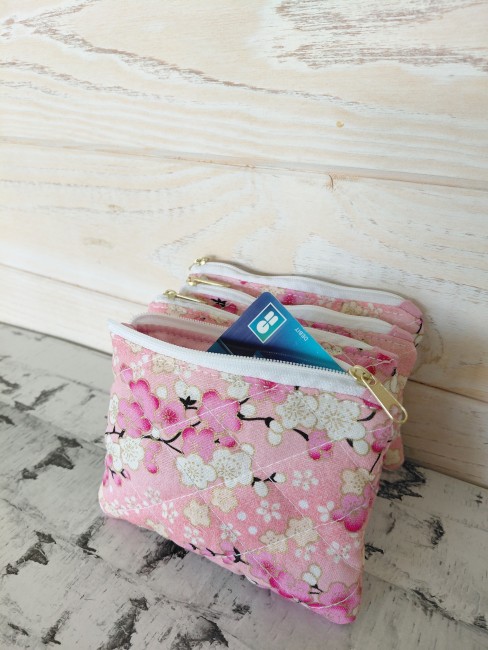 Porte-monnaie Cerisier – Coton fleuri rose – Fait main